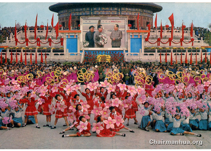 1977年10月1日,在我们伟大社会主义祖国成立28周年的节日,首都广大军民同党和国家领导人一起,参加盛大的游园联欢。华国锋主席,叶剑英、邓小平、李先念、汪东兴副主席同外宾,下午3时来到中山公园音乐堂,观看了首都文艺工作者和幼儿园孩子们演出的丰富多彩的音乐歌舞和杂技节目。